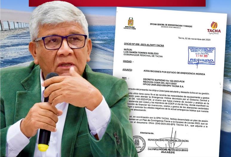 El alcalde provincial de Tacna, Pascual Güisa Bravo, envió al gobernador regional Luis Torres Robledo un plan de acción para enfrentar la crisis hídrica que afecta a la ciudad.