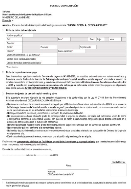 El Ministerio del Ambiente aprobó, mediante una resolución, la estrategia denominada ‘Capital Semilla – Recicla Seguro’, mediante la cual se brinda un bono de S/900 y el acompañamiento correspondiente a favor de las personas mayores de edad que se dedican a la actividad de reciclaje de manera formal y forman parte del padrón final aprobado por el sector.
