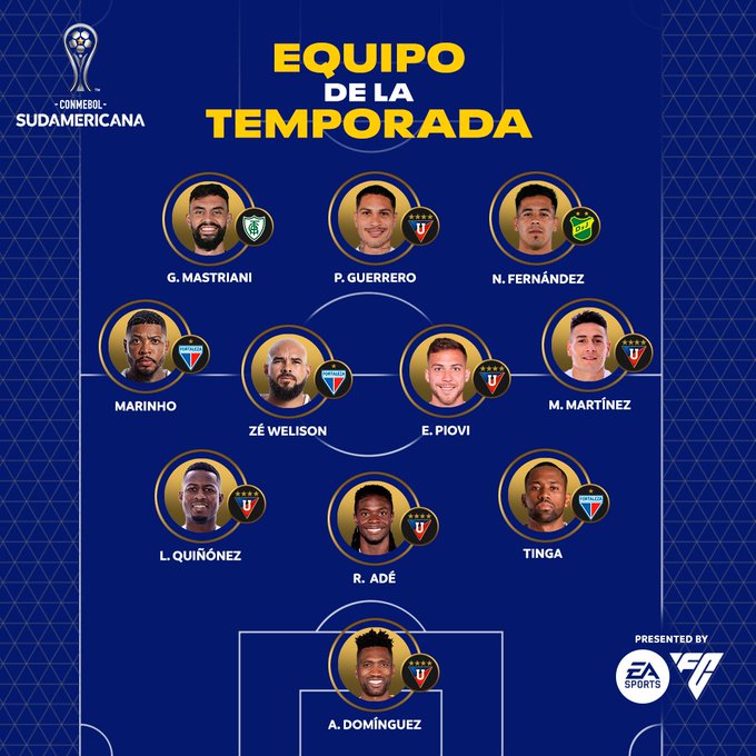 El equipo ideal de la temporada lo conforman los siguientes elementos: Alexander Domínguez (LDU), Leonel Quiñónez y Ricardo Adé (LDU), Tinga (Fortaleza) En el mediocampo están Marinho y Zé Welison (Fortaleza), acompañados de Ezequiel Piovi y Mauricio Martínez (LDU). Finalmente, en la delantera se encuentra Gonzalo Mastriani (América Mineiro), Nicolás Fernández (Defensa y Justicia) y Paolo Guerrero (LDU).