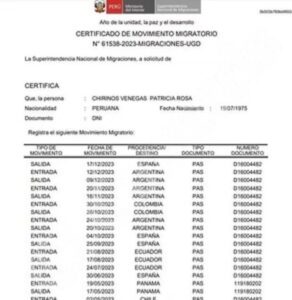 La parlamentaria de Avanza País habría concertado su salida del país de manera antelada y actualmente se encuentra en Madrid, España, país al que viajó sólo en 34 ocasiones, según revela su certificado de movimiento migratorio. En este año la parlamentaria hizo siete traslados a Europa.