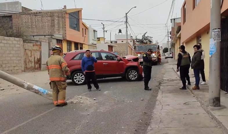 Un choque entre dos vehículos en la urbanización Los Damascos, en el cercado de Tacna, derribó un poste de luz la mañana de este viernes.