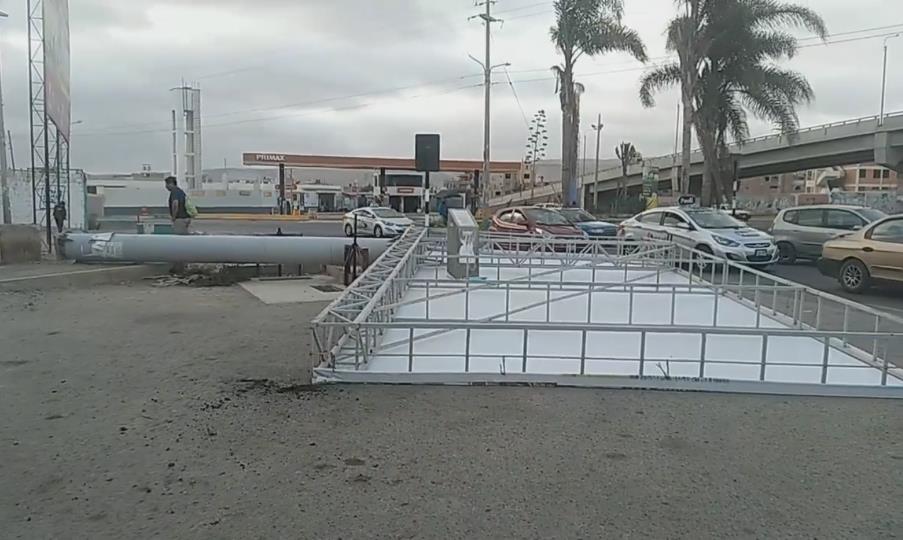 Un panel publicitario ubicado en el óvalo Cusco, en el distrito de Gregorio Albarracín Lanchipa, cayó pesadamente a pocos metros de la vía. El hecho ocurrió al promediar las 2:00 p.m., y no se registraron heridos.