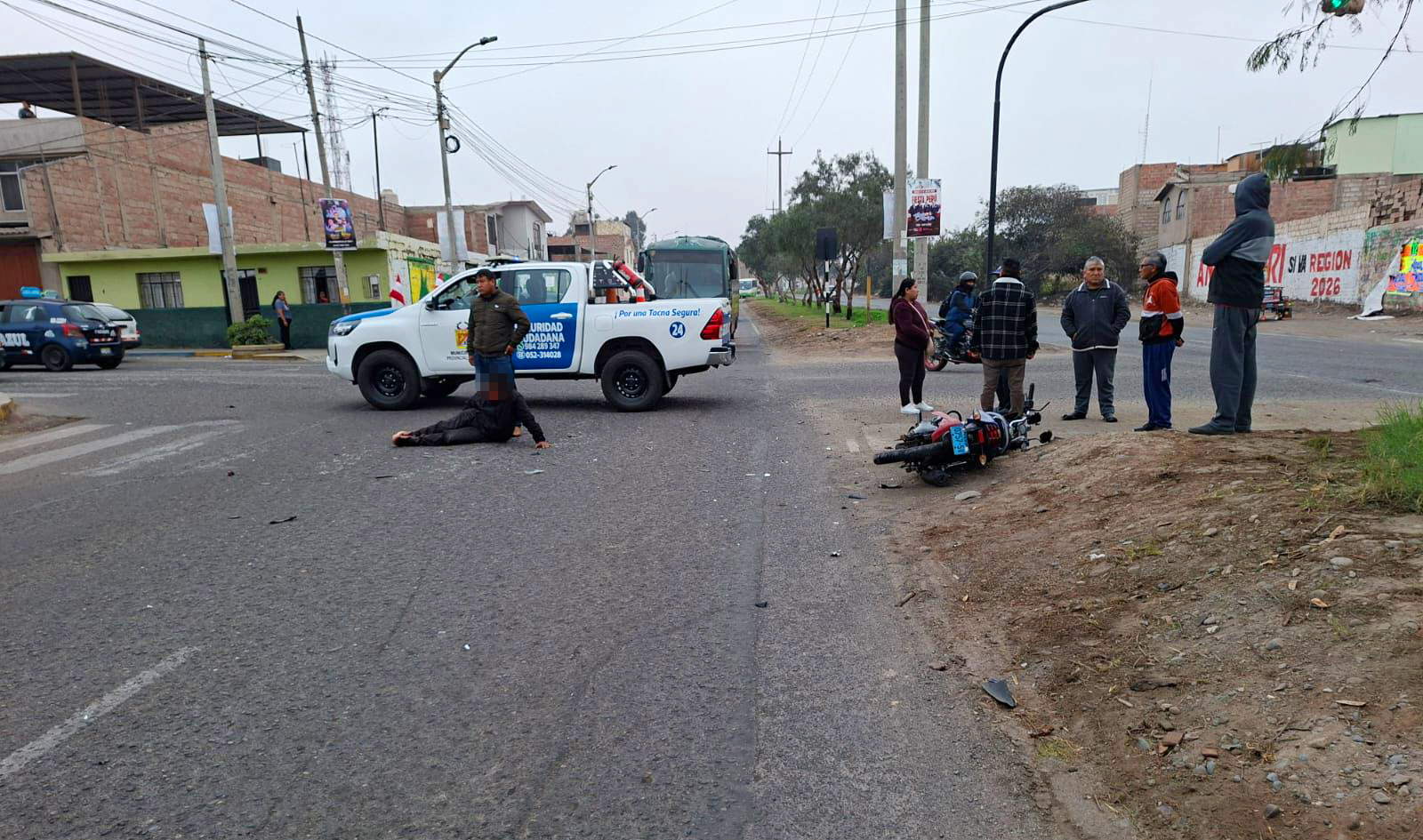 Un accidente de tránsito se registró esta mañana en la intersección de las avenidas Pinto y Jorge Basadre, en el sector de La Natividad, dejando como saldo un motociclista herido.