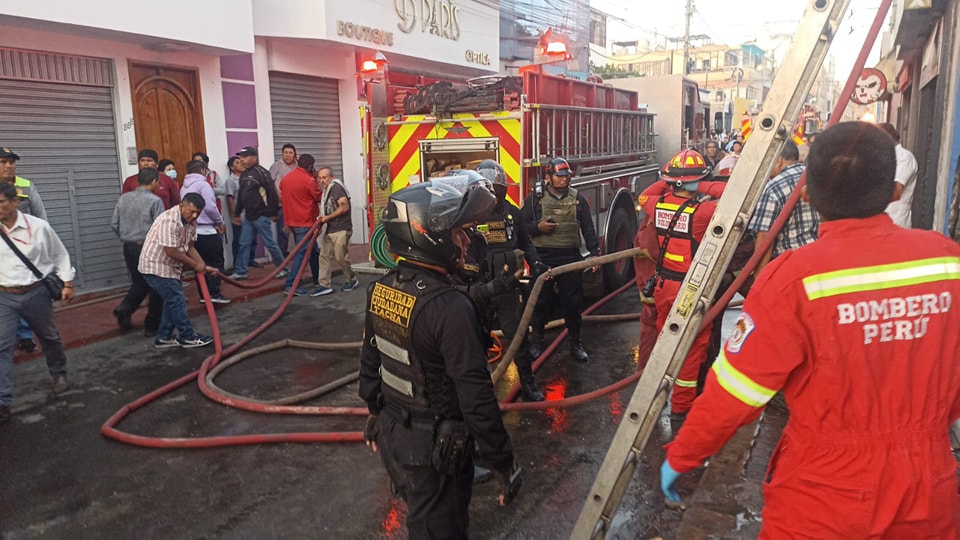 Dos trabajadores murieron calcinados en un voraz incendio que se registró en un local ubicado en la calle Zela, en el cercado de Tacna. El siniestro habría iniciado luego de una explosión, según vecinos.