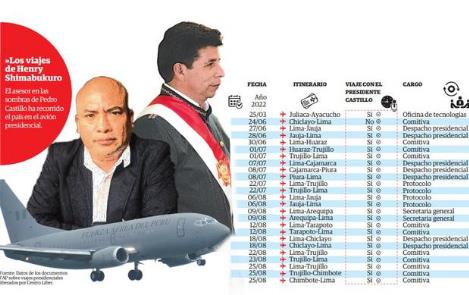 En lo que va del 2022, acompañó al presidente en aeronaves del Estado en 24 oportunidades por el interior del países. En algunas ocasiones era registrado como parte de la comitiva, del despacho presidencial e incluso secretaría general. Además, retornó de Chiclayo a Lima un día después de que viajara “Lay” Vásquez Castillo al mismo lugar.