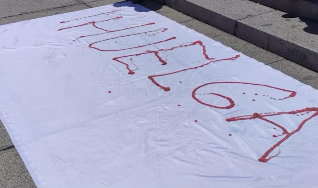 En Tacna, docentes de la Universidad Nacional Jorge Basadre Grohmann (UNJBG) se movilizaron desde la casa superior de estudios hasta el Paseo Cívico, donde se extrajeron sangre con jeringas para realizar inscripciones en banderolas de tela.