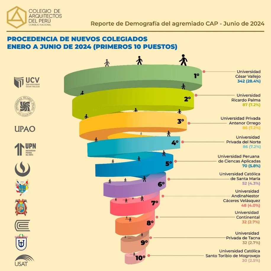 Un reciente informe del Colegio de Arquitectos del Perú revela un dato sorprendente sobre el origen de los nuevos profesionales de la arquitectura. Entre enero y junio de 2024, la Universidad César Vallejo se posicionó como la principal casa de estudios en formar a los arquitectos que se integran al colegio profesional. Con un 28.4% del total de nuevos colegiados, la UCV demuestra su liderazgo en este campo.