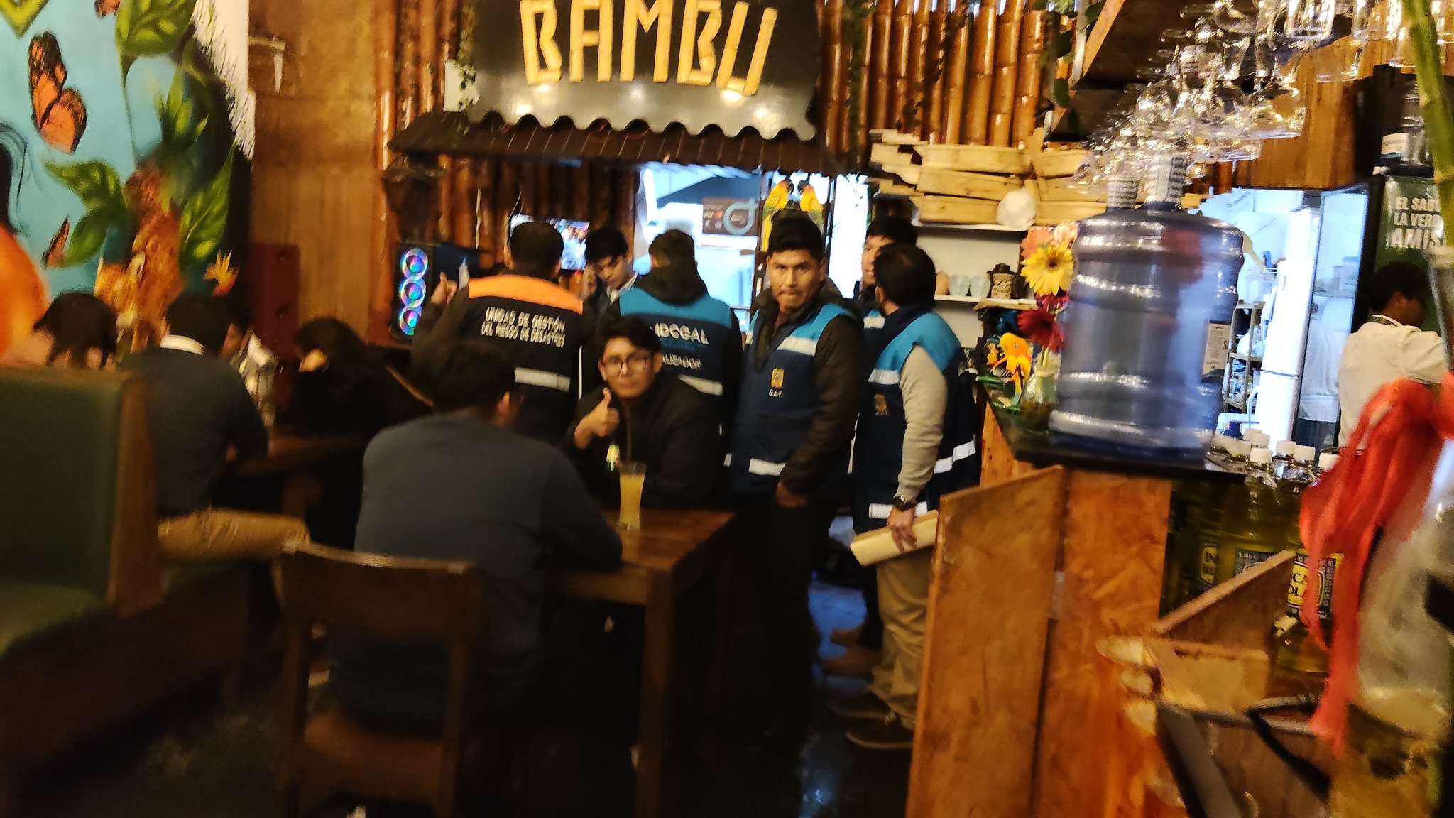 El operativo, que contó con la participación de personal de Gestión de Riesgos de Desastres, la Policía Nacional del Perú y Migraciones, incluyó un control de identidad a las personas que se encontraban consumiendo bebidas alcohólicas en el interior de los establecimientos.