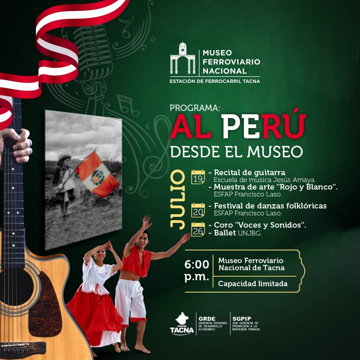 El Museo Ferroviario Nacional de Tacna invita a toda la comunidad a participar de estas actividades y celebrar juntos el aniversario patrio en un ambiente de cultura, música y tradición.