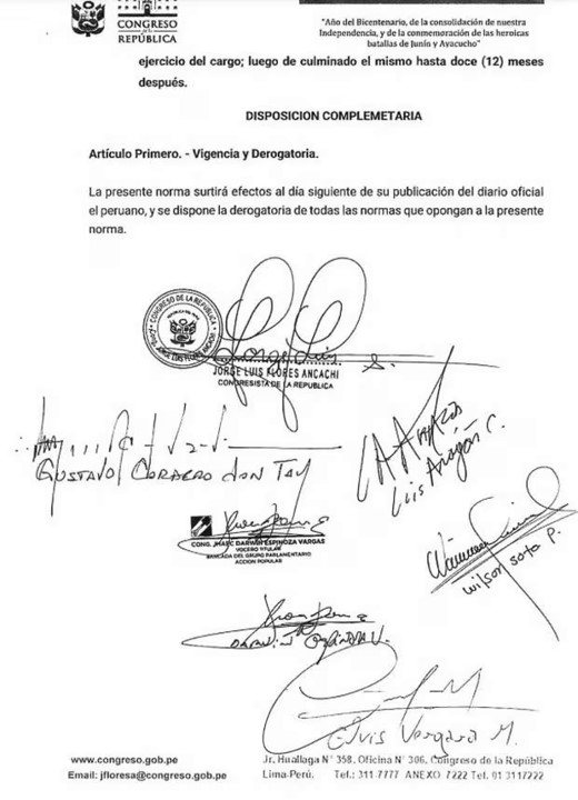 El proyecto, que ingresó el 2 de abril de 2024, impulsado por Jorge Luis Flores Ancachi fue suscrito por los congresistas Elvis Vergara, Darwin Espinoza, Wilson Soto y Luis Ángel Aragón, de Acción Popular, y Luis Cordero Jon Tay.