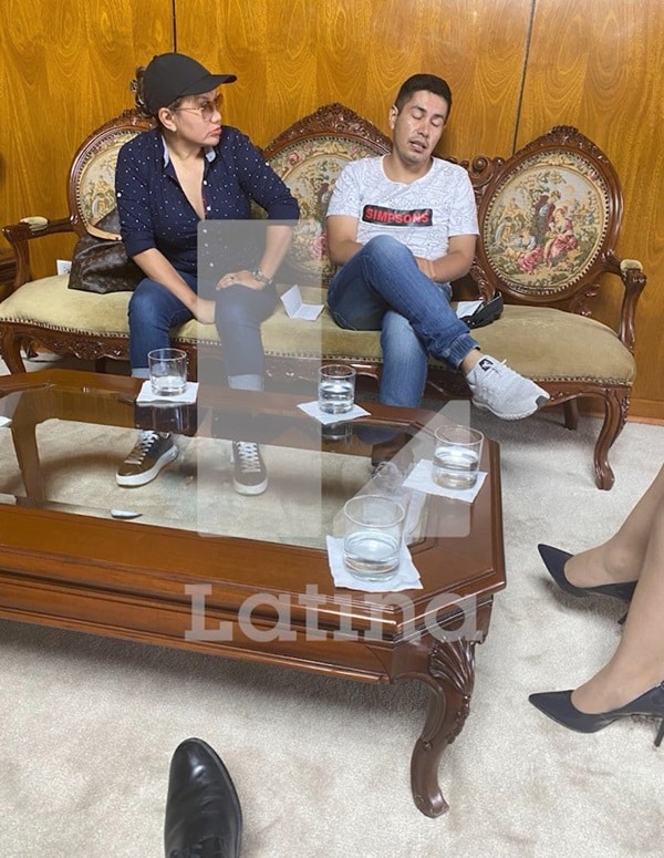 Ambos estarían sentados en la mencionada Sala de Embajadores del Ministerio Público. En la misma escena, se ven los pies de quien sería, Patricia Benavides, calzando tacos y unos zapatos que corresponderían a Jaime Villanueva, su controvertido exasesor.