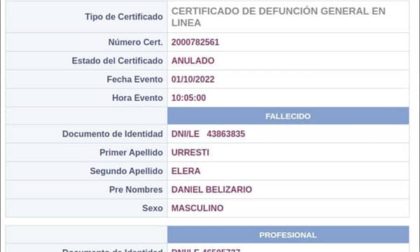 También como muerto aparecía el excandidato a la alcaldía de Lima, Daniel Urresti. Jefa de RENIEC denunció irregularidades en el Sistema Informático Nacional de Defunciones (SINADEF) del Ministerio de Salud.