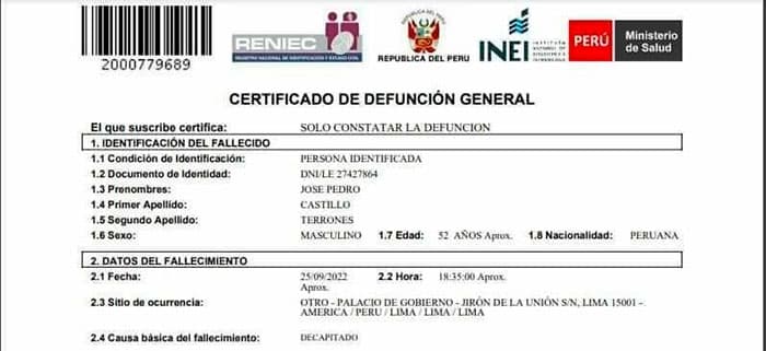 A los fallecimientos de la fiscal de la Nación, Patricia Benavides, y el dueño de la casa de Sarratea, Alejandro Sánchez, se suma también el deceso por «decapitamiento» del presidente Pedro Castillo y el de excandidato a la alcaldía de Lima, Daniel Urresti.