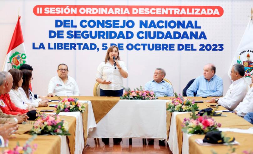La presidenta participó en la clausura del Conasec junto al presidente del Consejo de Ministros, Alberto Otárola, así como ministros de Estado. También estuvo la fiscal de la nación, Patricia Benavides; el gobernador regional de La Libertad, César Acuña, y alcaldes de diversas jurisdicciones del país.