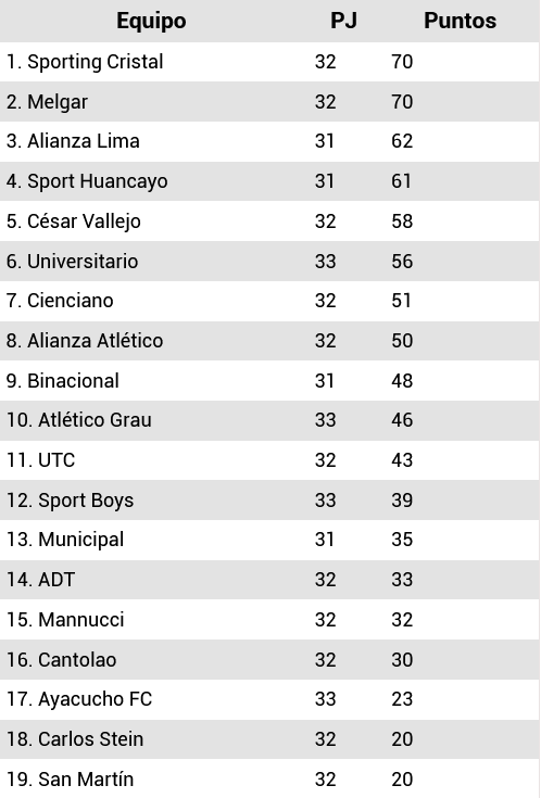 Repasa aquí la tabla acumulada de la Liga 1, actualizada tras el partido entre Cristal vs Universitario ¿Cómo está la clasificación?