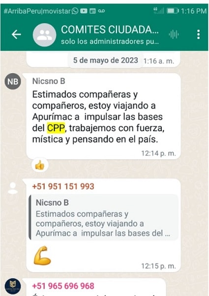 El ‘hermanísimo’ sabía que los prefectos y subprefectos de diversas regiones del país eran claves para su proyecto político. Por ello, los habría captado para participar en eventos virtuales y presenciales del partido “Ciudadanos por el Perú”. Un chat de un grupo de WhatsApp de 35 participantes da cuenta de que Nicanor llevaba la voz cantante del grupo.