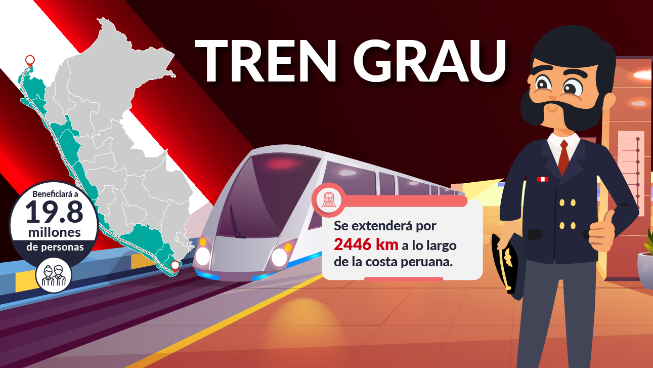 Atravesar toda la costa peruana a bordo de un vehículo ecológico, seguro y veloz será posible mediante el megaproyecto ferroviario del Tren Grau, una obra que el Ministerio de Transportes y Comunicaciones (MTC) está formulando y para lo cual ha estimado una inversión aproximada de USD$ 32 664 millones.