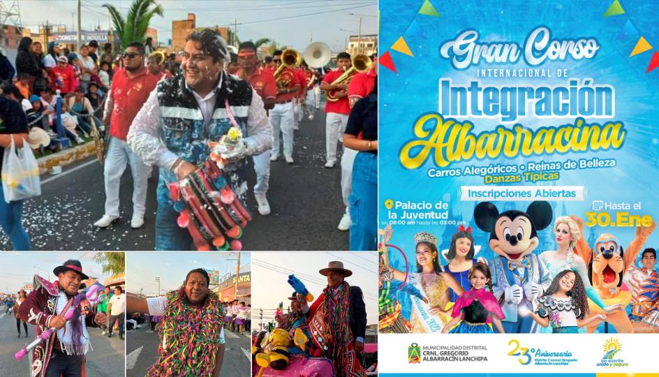 Los alcaldes de Gregorio Albarracín, Pocollay, Calana y Ciudad Nueva disfrutaron al máximo del Gran Corso de Carnaval realizado en el distrito. Niel Zavala (Gregorio Albarracín), Hugo García Mamani (Pocollay), Enrique Taquila Huarina (Calana) y Walter Cardoza Chura (Ciudad Nueva) bailaron y jugaron con la población, contagiando de alegría a todos los presentes.