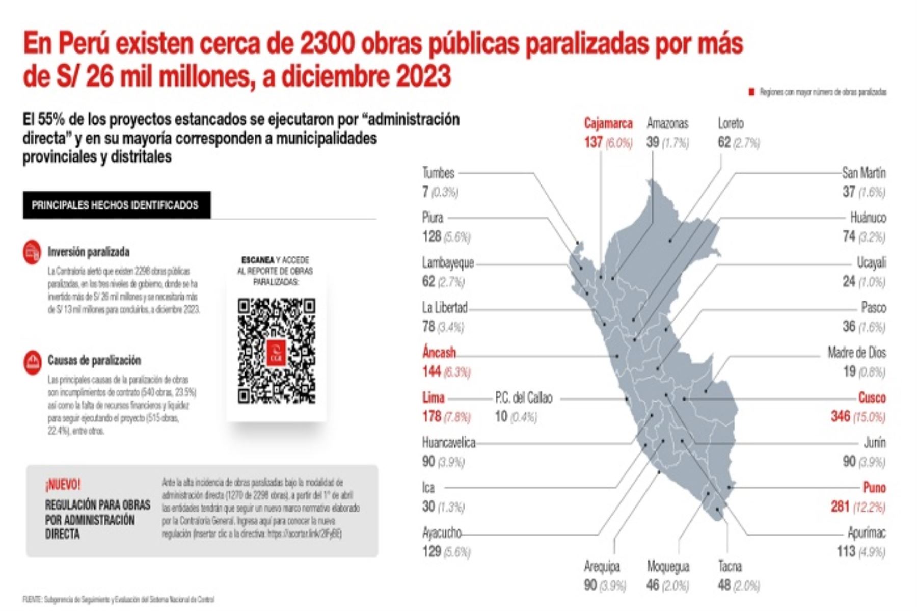 En proyectos truncos se invirtió más de S/ 26,000 millones a diciembre del 2023, precisa la Contraloría General.