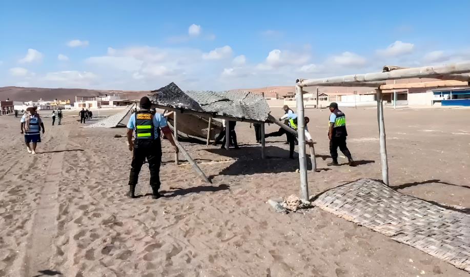 Como se había anunciado, este miércoles 3 se inició el retiro de sombras de esteras en playa El Planchón, en donde el fin de semana último se registraron actos de discriminación y agresión por el uso de dicho espacio público.