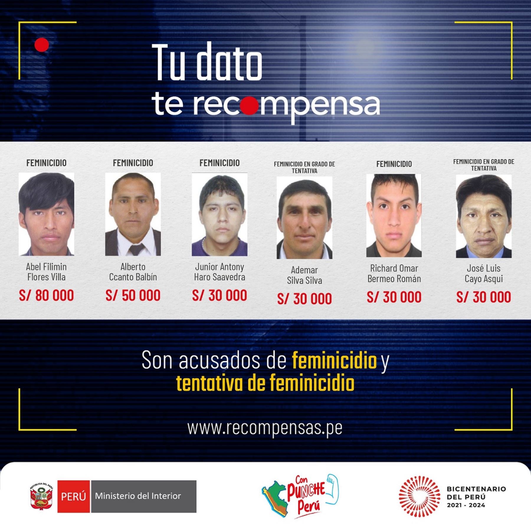 Lee más: Ofrecen recompensas de hasta 80 mil soles por 27 feminicidas prófugos de la justicia