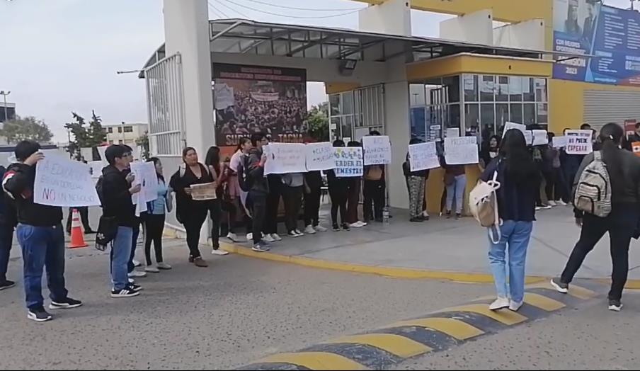 Estudiantes de las diferentes facultades de la Universidad Nacional Jorge Basadre Grohmann (UNJBG) de Tacna realizaron este jueves un plantón en el frontis de la institución educativa para exigir la reanudación inmediata de las clases.