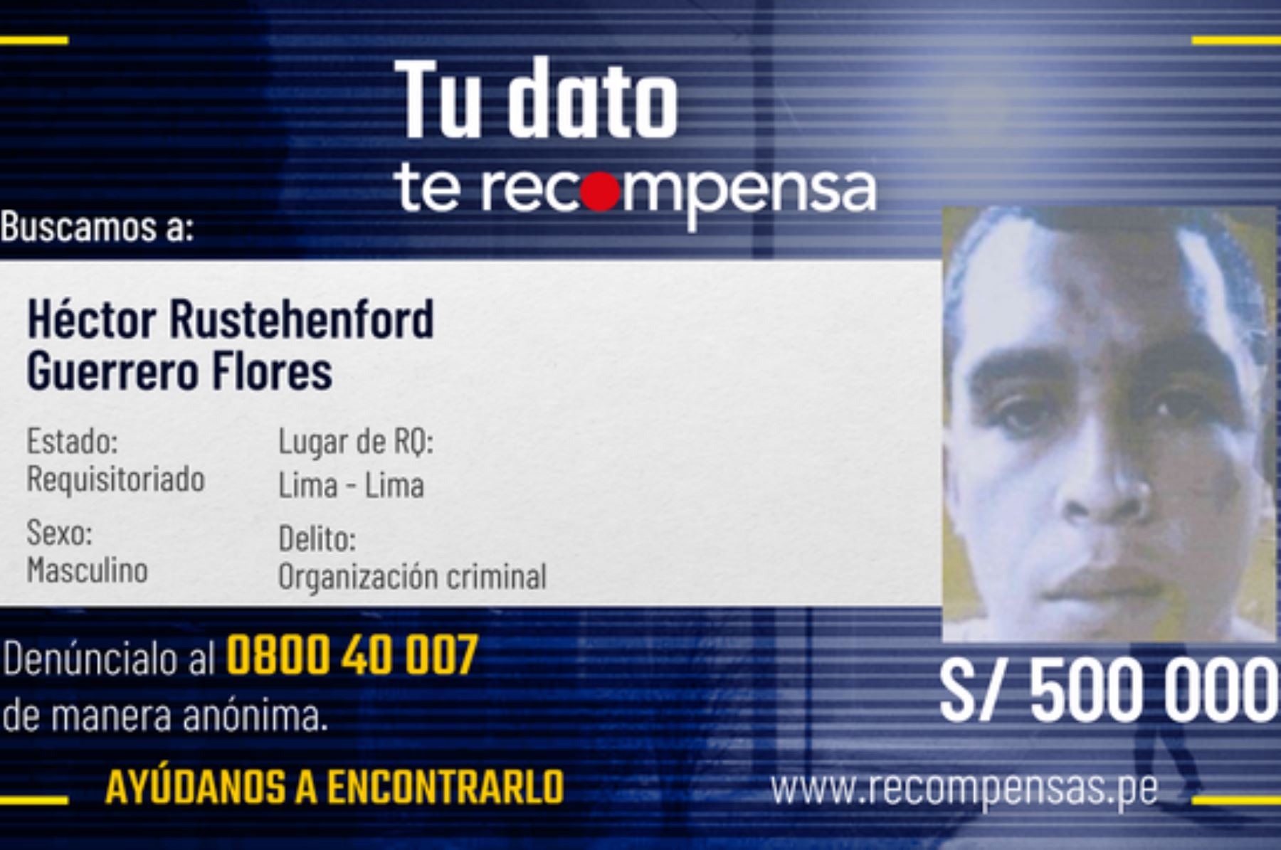 El ministro del Interior, Vicente Romero, dijo que se ha establecido una recompensa de 500,000 soles para la persona que brinde información que lleve a la captura de Héctor Guerrero, alias 'Niño Guerrero', cabecilla de la organización criminal Tren de Aragua.