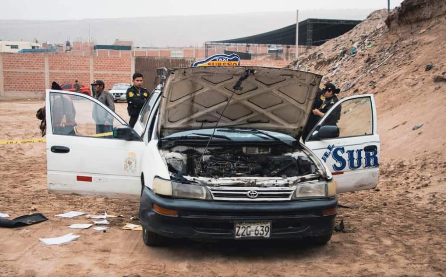 Un taxi robado y desmantelado fue hallado en un terreno baldío de la asociación Tacna Heroica, en el distrito Ciudad Nueva.