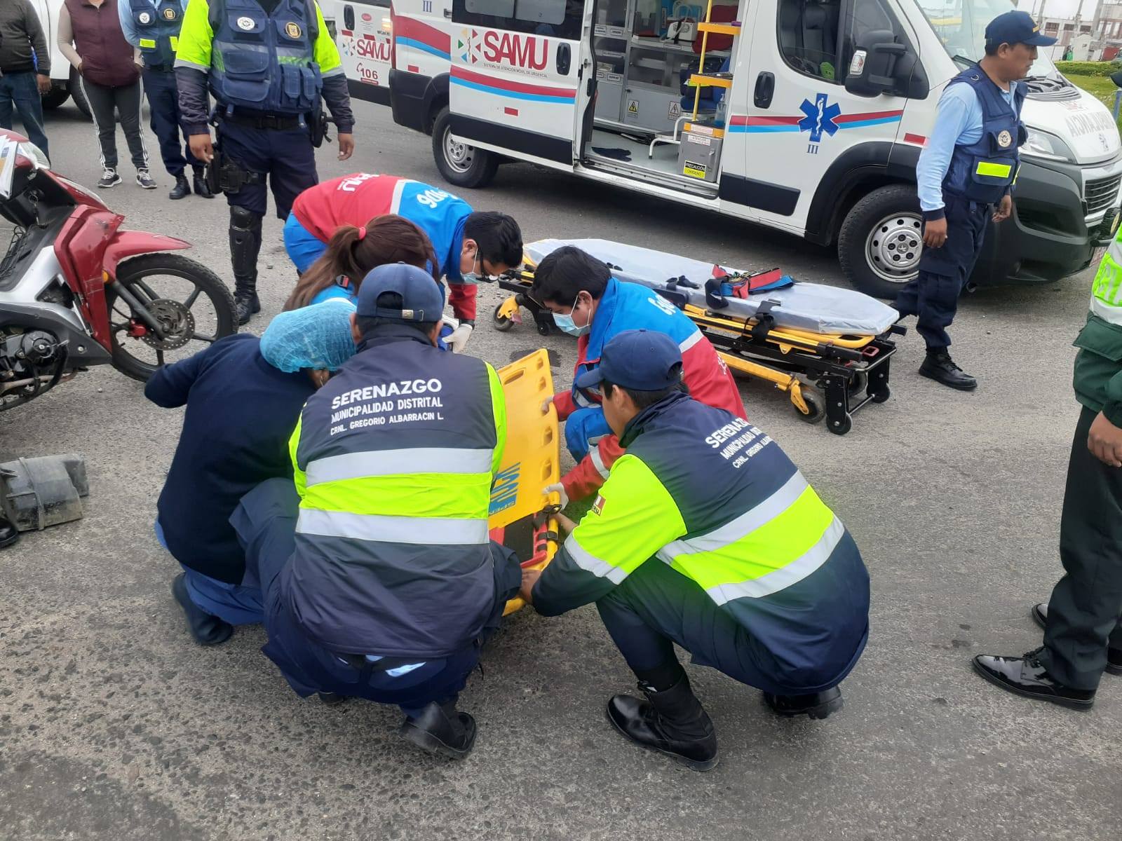 Un accidente de tránsito se registró en el óvalo La Cultura, dejando a un motociclista y su acompañante heridos. La colisión, que involucró una moto lineal y un automóvil, movilizó a personal de Serenazgo y efectivos de la Policía Nacional del Perú.