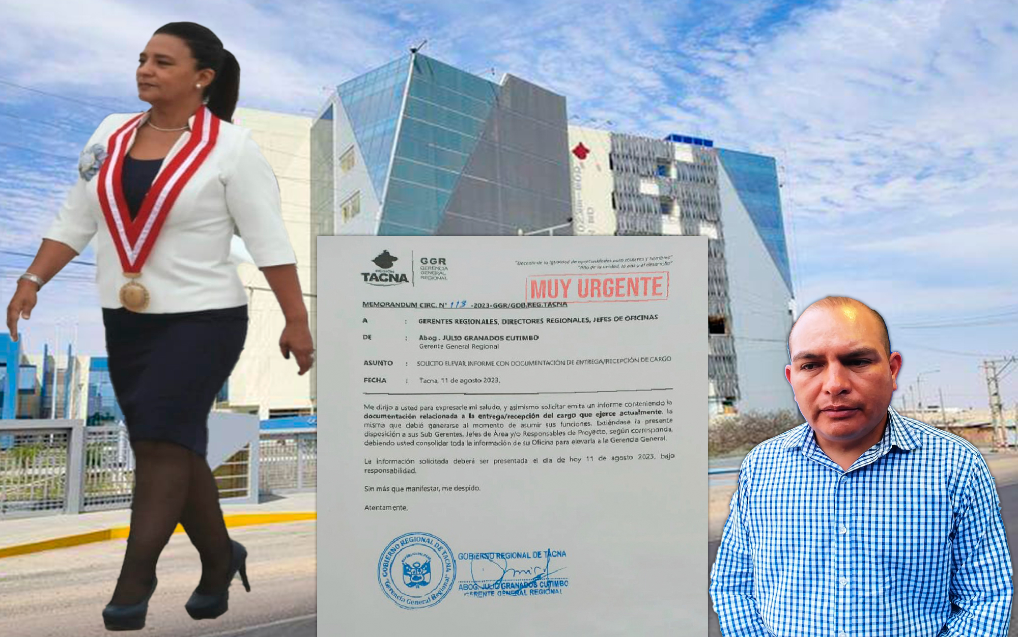 Según el memorándum 113-2023-GGR/GOB.REG.TACNA emitido hoy por el gerente general Julio Granados Cutimbo.