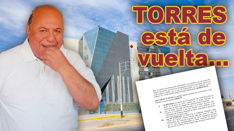Medida Cautelar ordenó el regreso de Luis Ramón Torres Robledo como Gobernador Regional de Tacna, luego de que el Jurado Nacional de Elecciones lo suspendiera del cargo el 15 de junio hasta que solucione sus problemas judiciales (prisión domiciliaria).