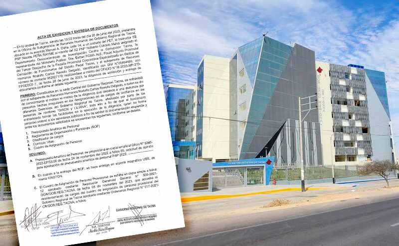 Como se recuerda el día de ayer el Tercer Despacho de la Fiscalía Provincial Corporativa Especializada en Delitos de Corrupción de Funcionarios del Distrito Fiscal Tacna, intervino las oficinas de la nueva sede del Gobierno Regional de Tacna, tras tomar conocimiento sobre presuntas designaciones indebidas en cargos de confianza por parte de la Gobernadora PROVISIONAL Liliana del Carmen Velazco Cornejo.