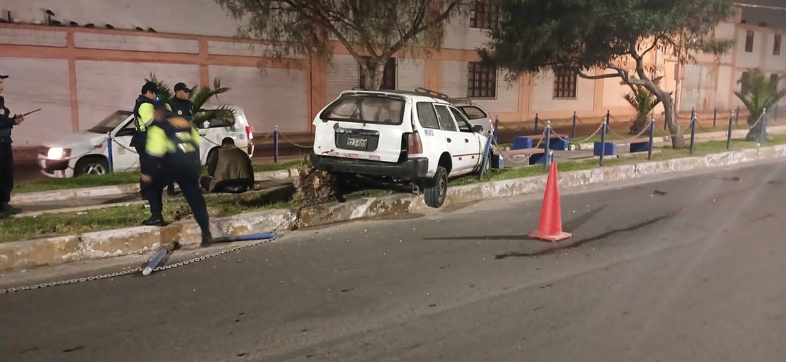 Un aparatoso choque se registró en la madrugada de hoy, aproximadamente a las 00:36 horas, en la intersección de las avenidas La Cultura y Villa El Salvador. Un automóvil blanco tipo Station Wagon, con placa de rodaje D2J-603, impactó violentamente contra el sardinel central de la vía, ocasionando daños materiales al vehículo.