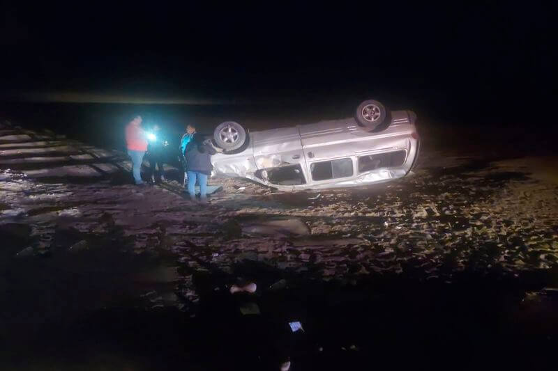 Combi quedó con las llantas hacia arriba a la altura del km 1325 de la Panamericana.