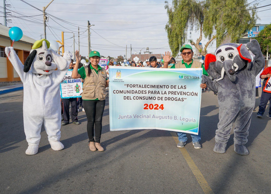 En una muestra de compromiso con una vida saludable, la Municipalidad Provincial de Tacna, en coordinación con el Programa De Vida, organizó un colorido pasacalle en la Junta Vecinal Augusto B. Leguía con el objetivo de promover una comunidad libre de drogas y alcohol.