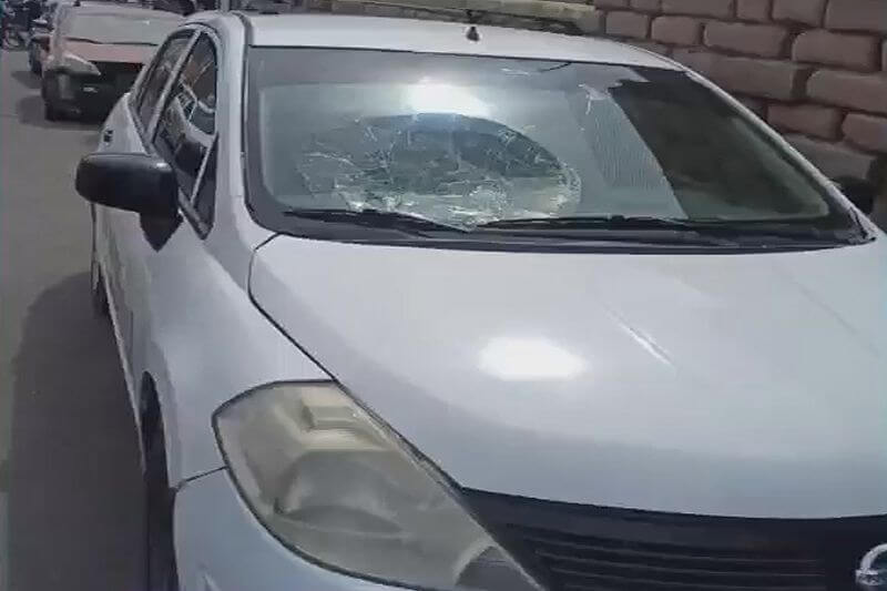 Patrullero y bus de ruta 7 resultaron con lunas rotas tras ser apedreados.