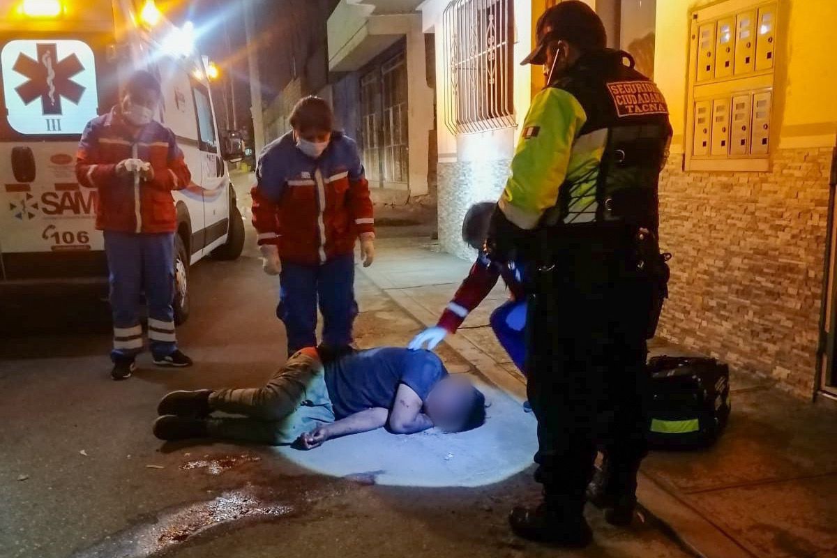 En un hecho que ha conmocionado a la ciudad, agentes de seguridad ciudadana de la Municipalidad Provincial de Tacna auxiliaron en la madrugada de hoy a un hombre que se encontraba tendido y herido en la Av. Jorge Basadre, a la altura de la Asociación de Vivienda Santa Catalina.