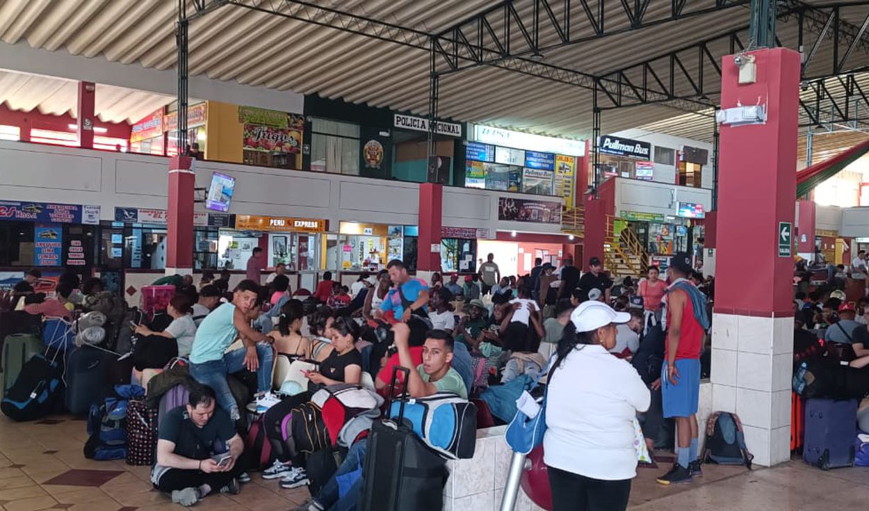 Cientos de ciudadanos extranjeros y peruanos durmieron en los alrededores del terminal nacional y algunos se refugiaron en el internacional. La situación generó problemas sanitarios.