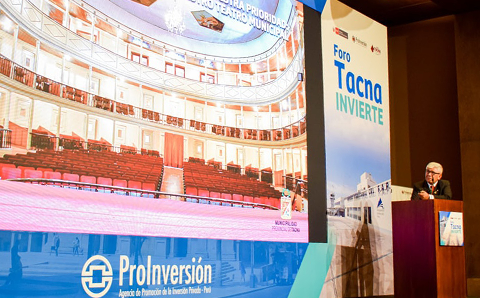 El alcalde de Tacna, Pascual Güisa Bravo, presentó esta mañana una cartera de once proyectos a un auditorio conformado principalmente por inversionistas nacionales y extranjeros. El evento se desarrolló en la Sala Huascarán del Hotel Hilton, donde la autoridad edil dio a conocer seis proyectos en la modalidad de obras por impuestos y cinco en proyectos en activos, los cuales requieren una inversión total de 230,9 millones de soles.