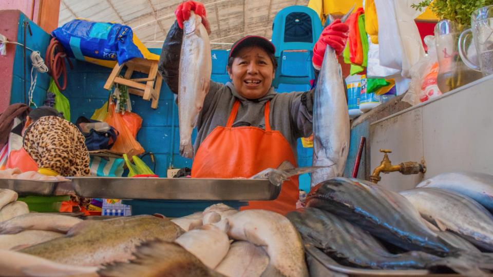 El Mercado Santa Rosa se prepara para recibir a los consumidores durante el feriado largo por Semana Santa. Los comerciantes del sector de productos hidrobiológicos se encuentran abastecidos con una amplia variedad de pescados frescos para satisfacer la demanda de la población.